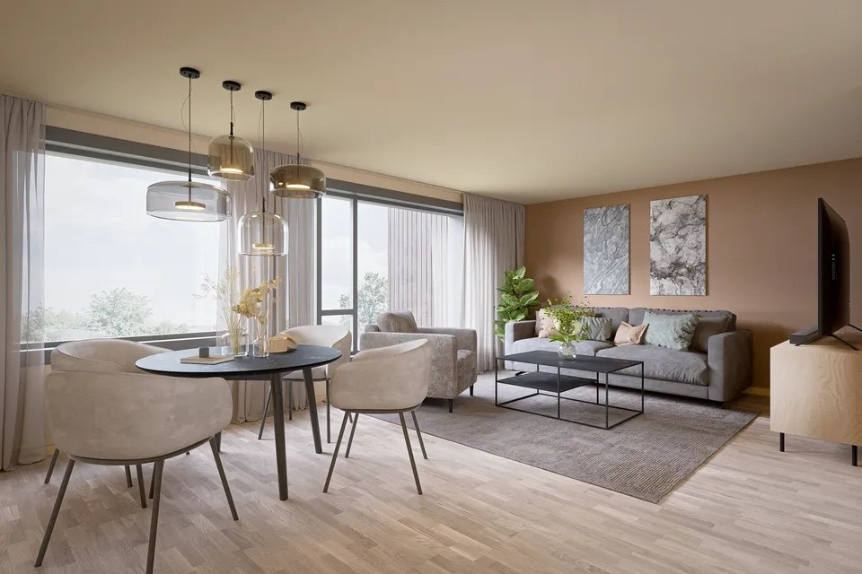 Beliggenhet: Her bor du i idylliske omgivelser, med naturen som nærmeste nabo. Samtidig er beliggenheten sentral med kort vei til sentrum, og dagligvarebutikker og busstopp like ved. Leilighet: Boligene er moderne og velutstyrte, med funksjonelt design som gir god komfort. Det er lagt ned mye arbeid og omtanke i å skape et hjemlig miljø. Kjøkkenet er hjertet i ethvert hjem, og med kjøkkeninnredning fra HTH og hvitevarer fra Gorenje vil du alltid ha et varmt og innbydende sted å samle familien og venner. På badet, som inkluderer en heldekkende servant og et stort speil, kan du sette deg selv i fokus og skjemme deg bort.